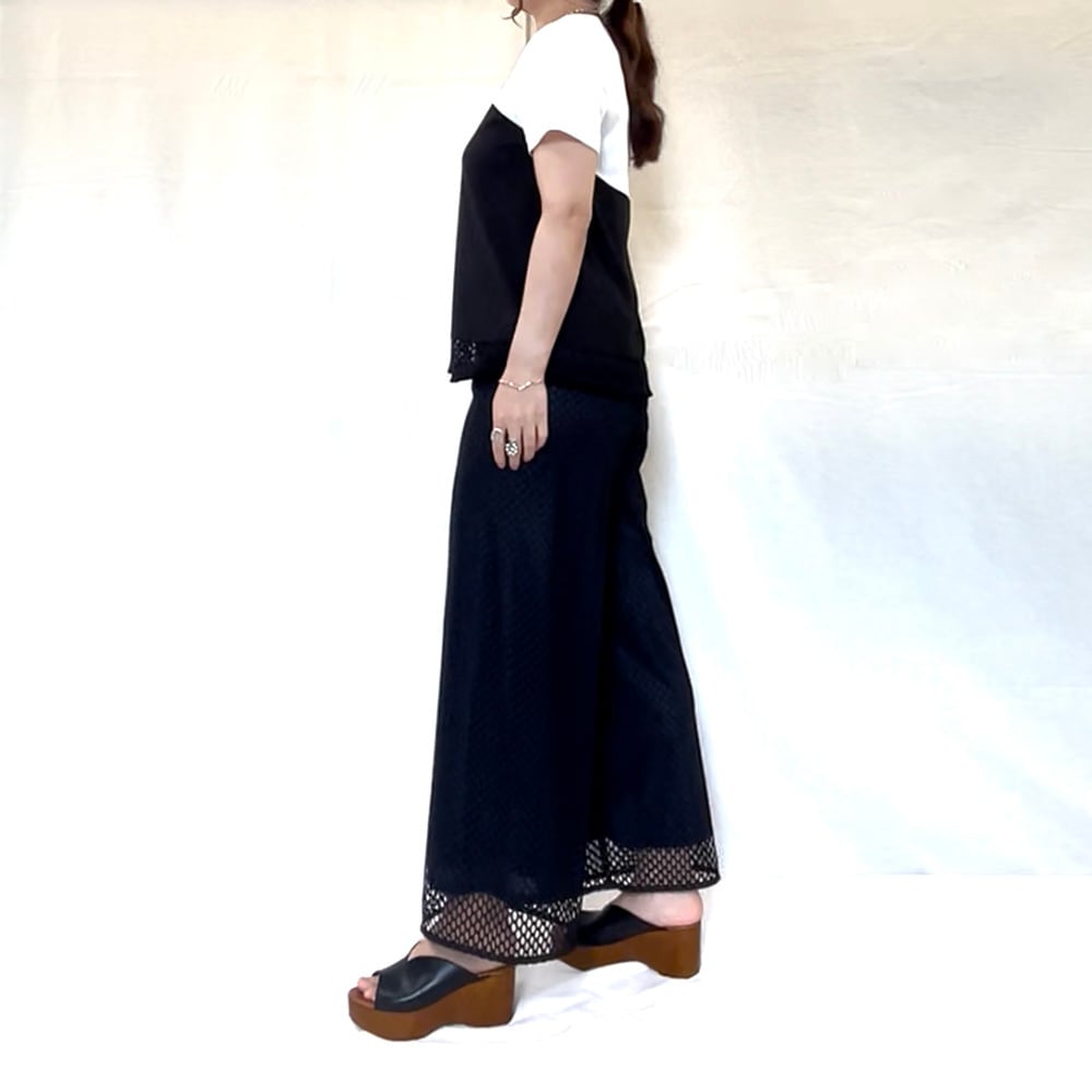 大きめのメッシュレースが大胆な夏らしいパンツ。