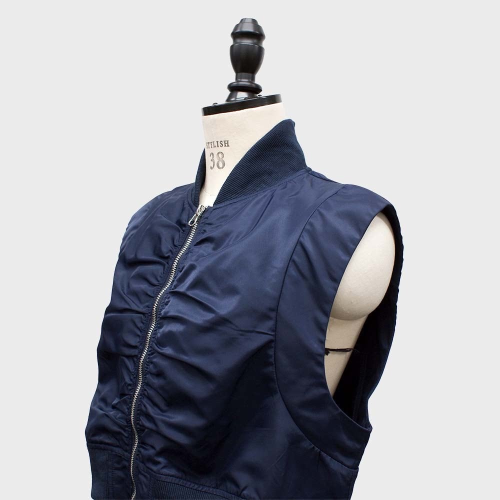 フロントとバックにギャザーを寄せて、フェミニンな要素をプラスしたユーティリティーMA-1です。