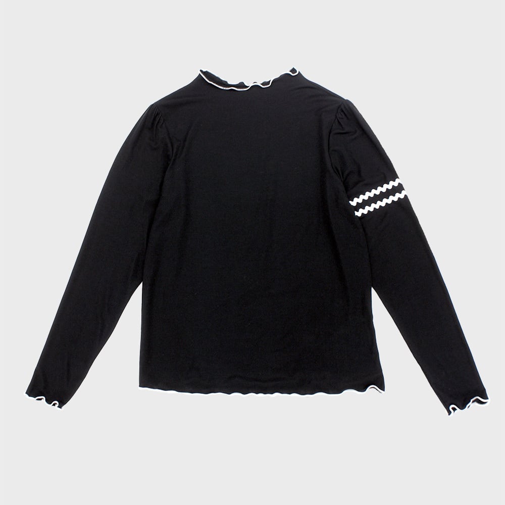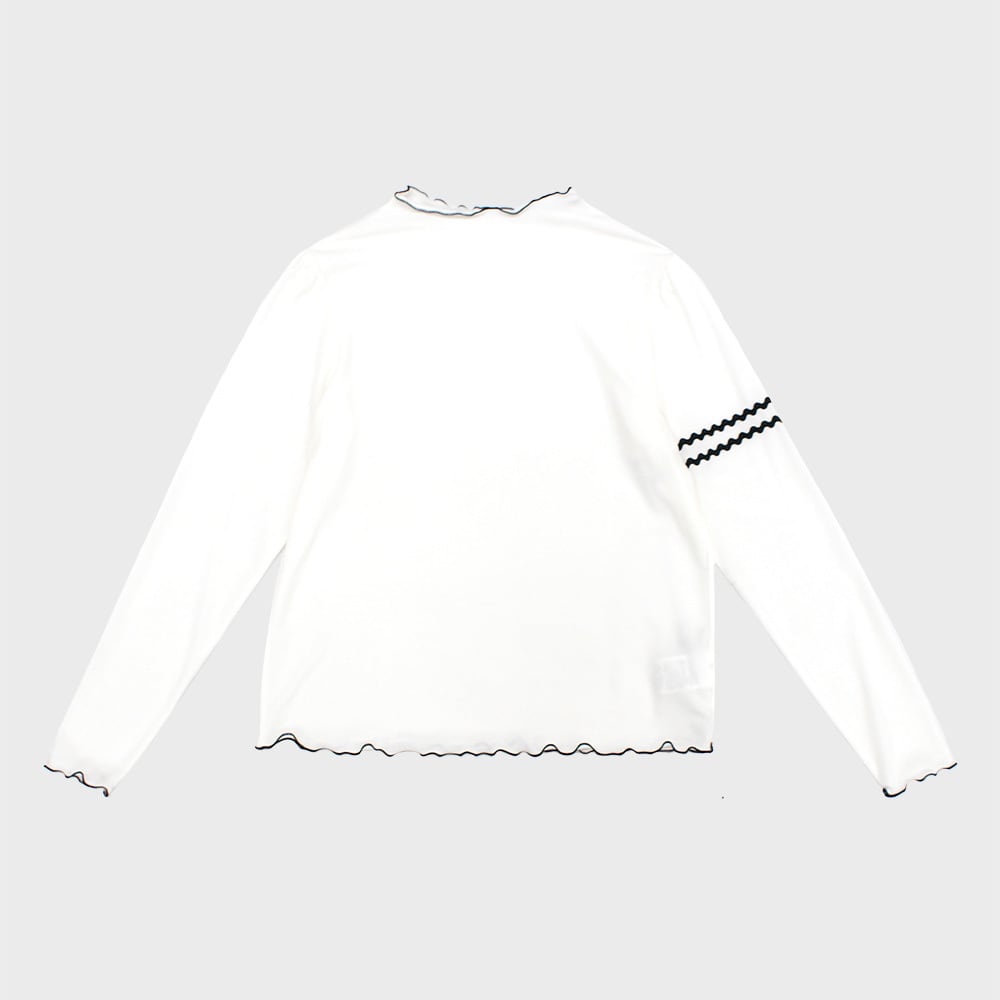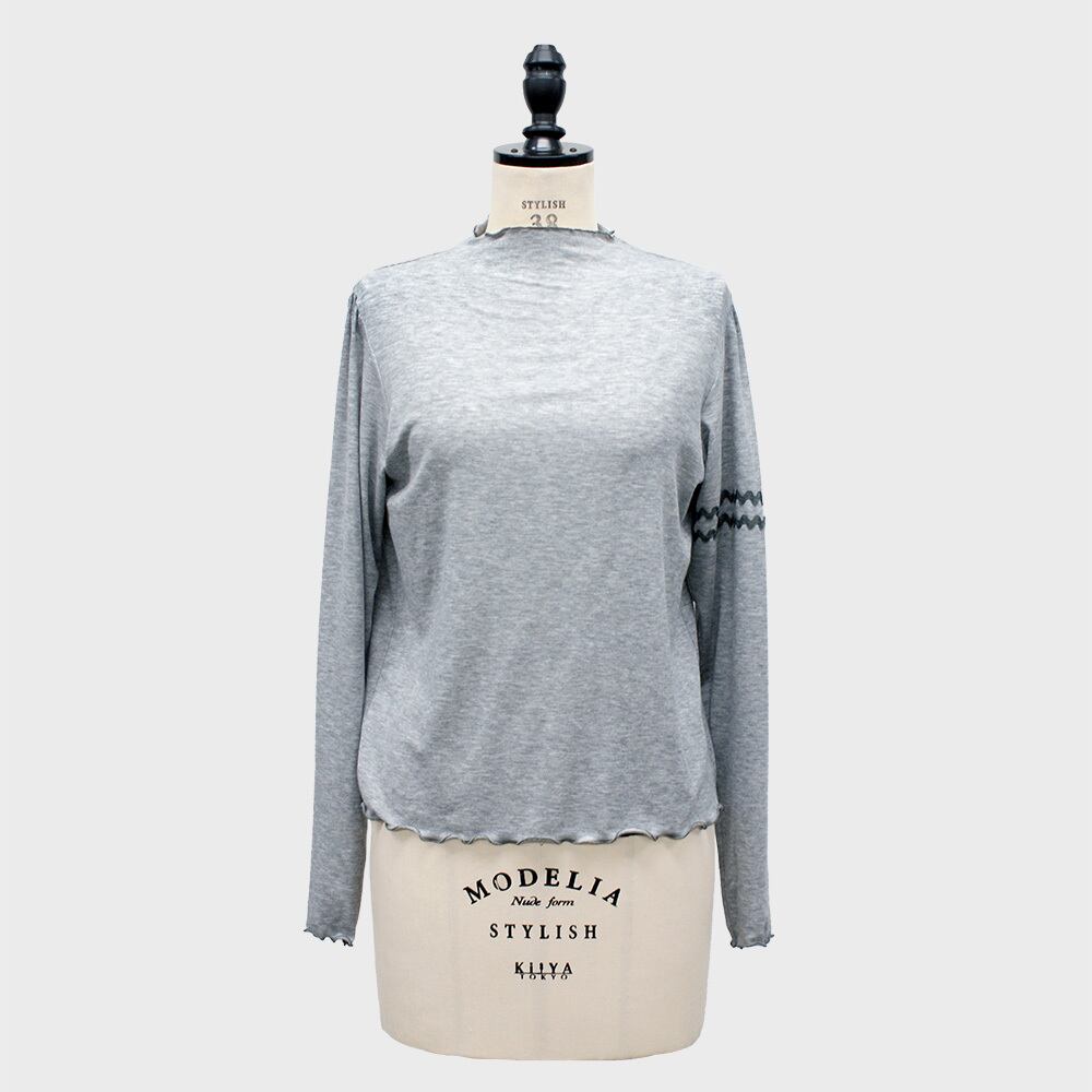配色のメロウ始末と左腕のラインテープがポイントになったカットソー。