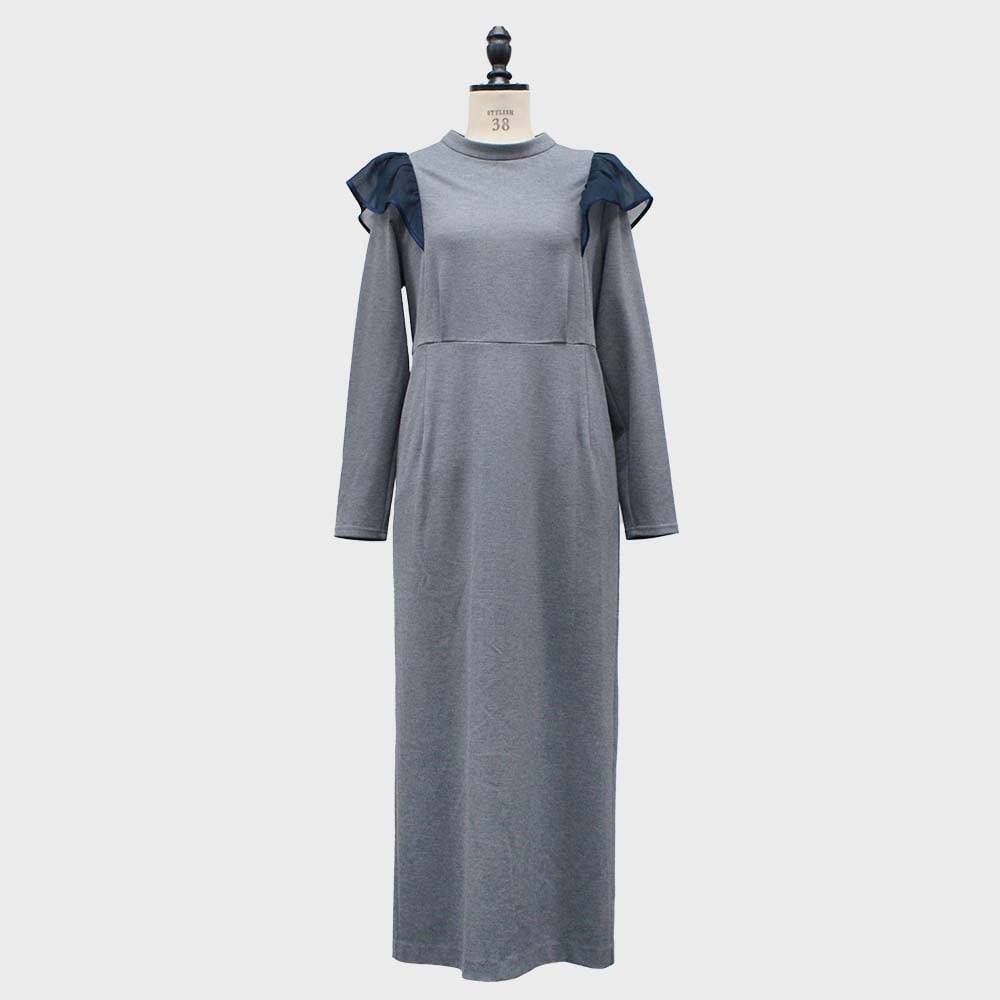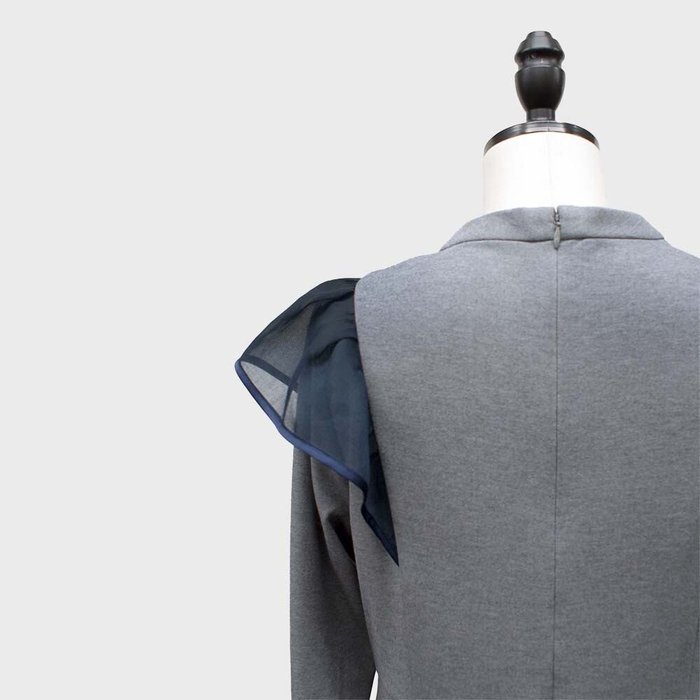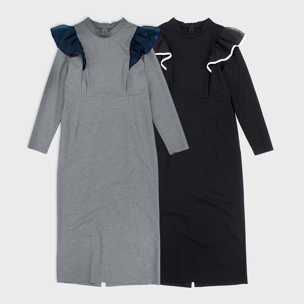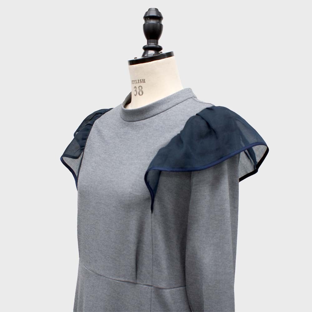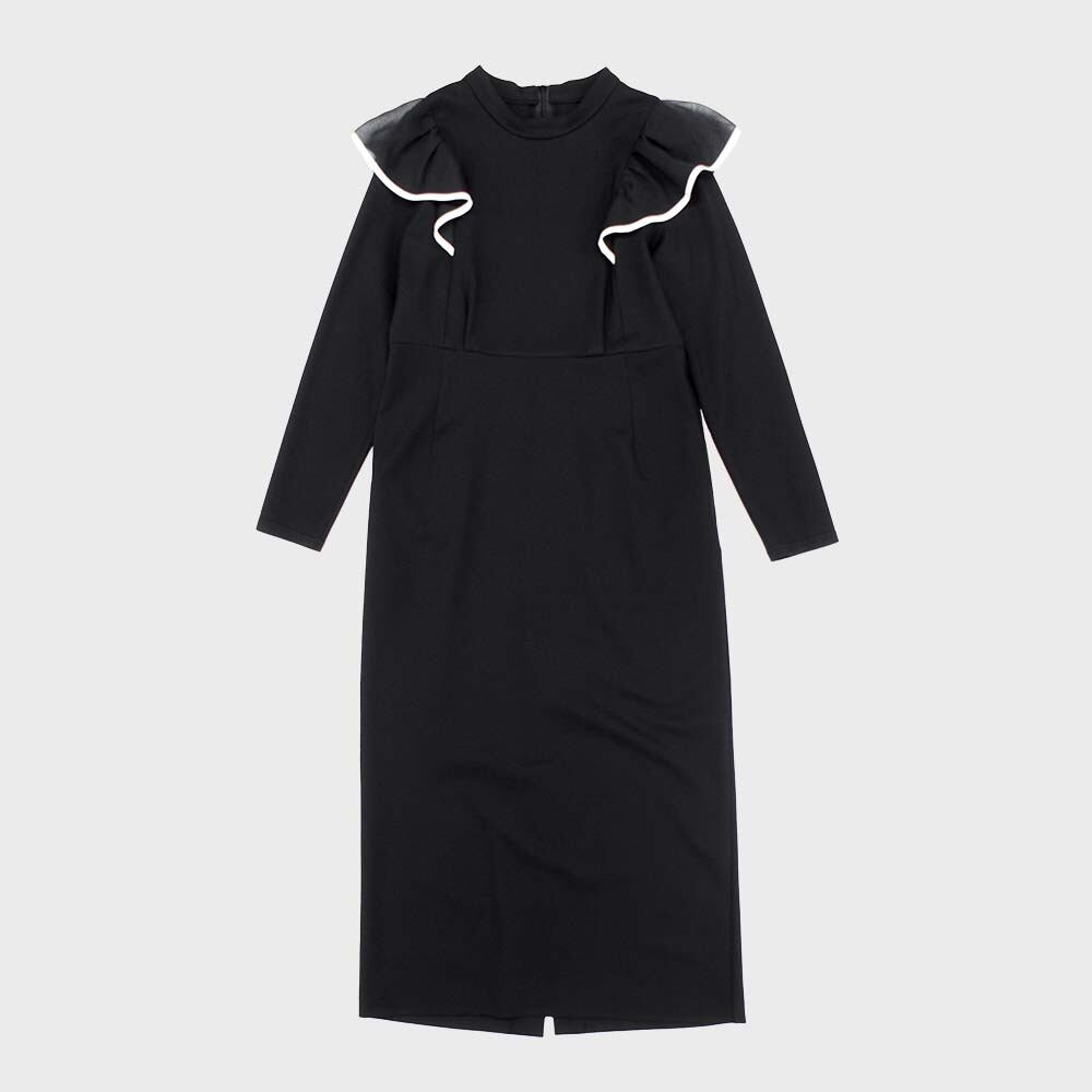 顔周りを華やかにしてくれるオーガンジーとサテンの縁取りフリルが目を惹くワンピース。