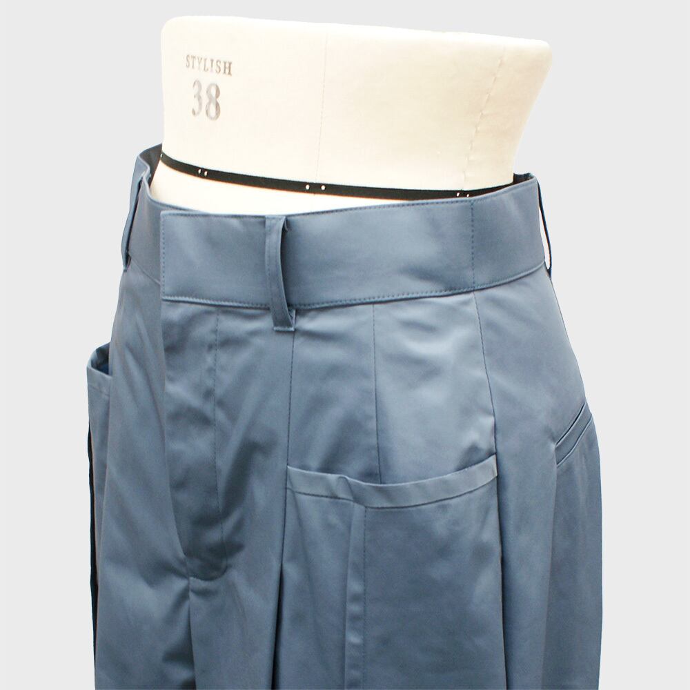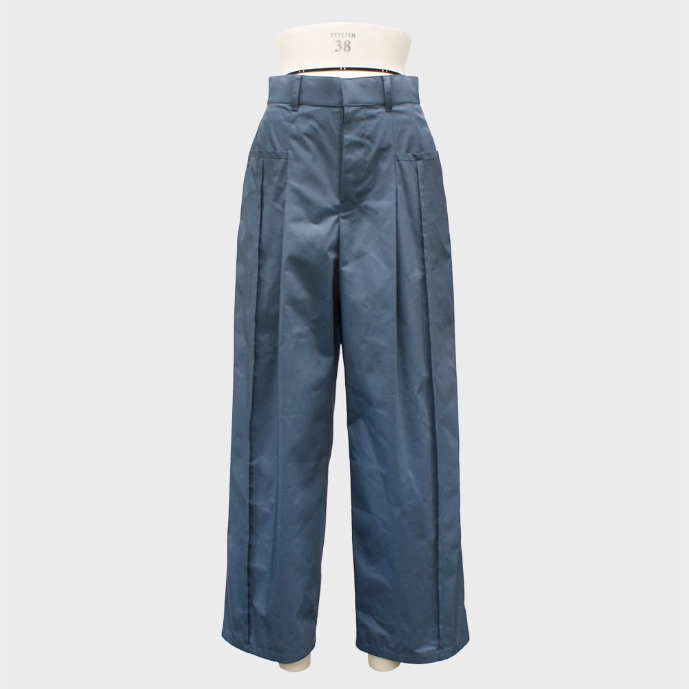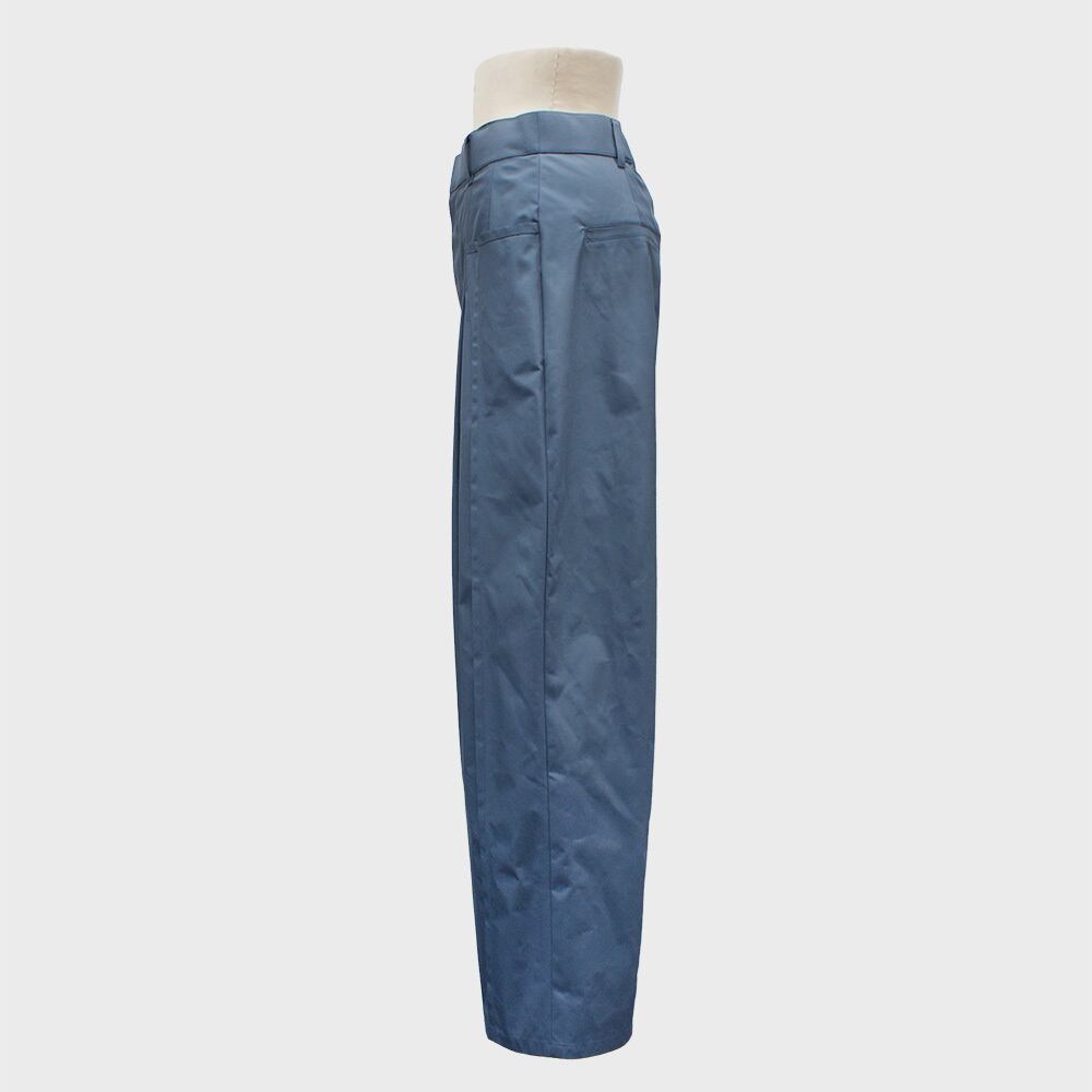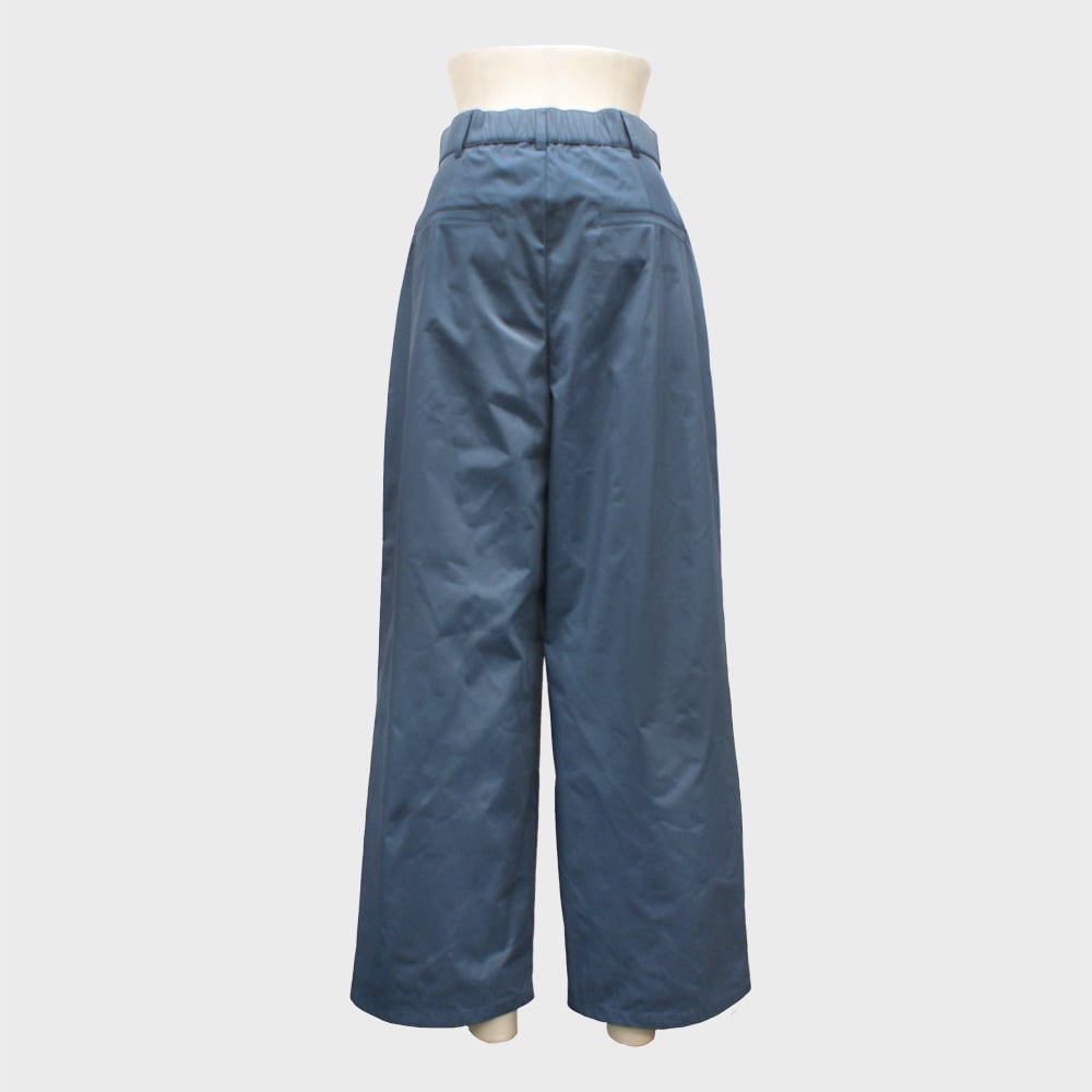 撥水、フッ素フリー、リサイクル、手洗い可といった高機能素材のタックワイドパンツです。