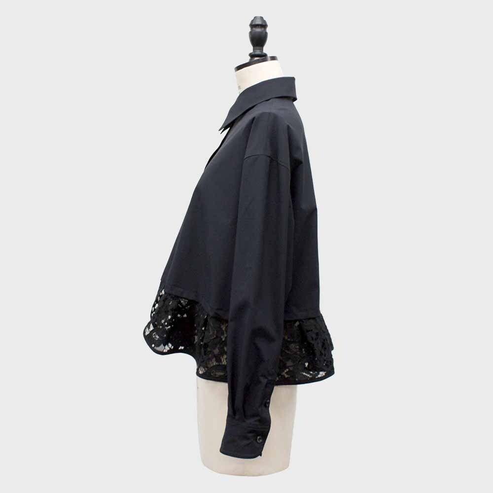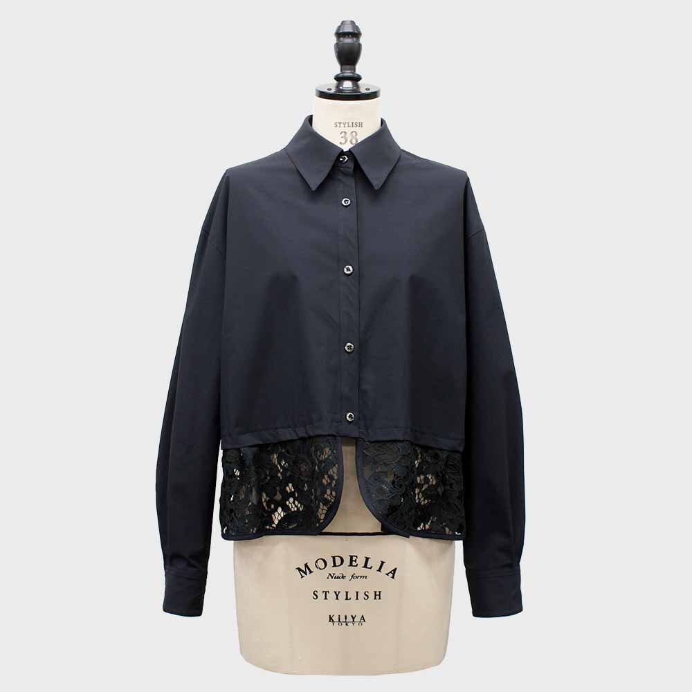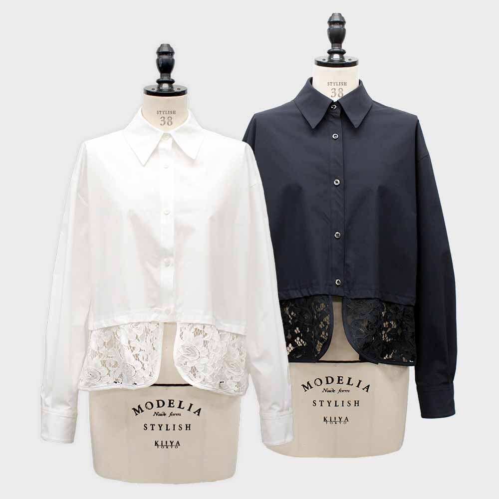 裾レース素材がドッキングされた1枚で着映えするデザインシャツ。