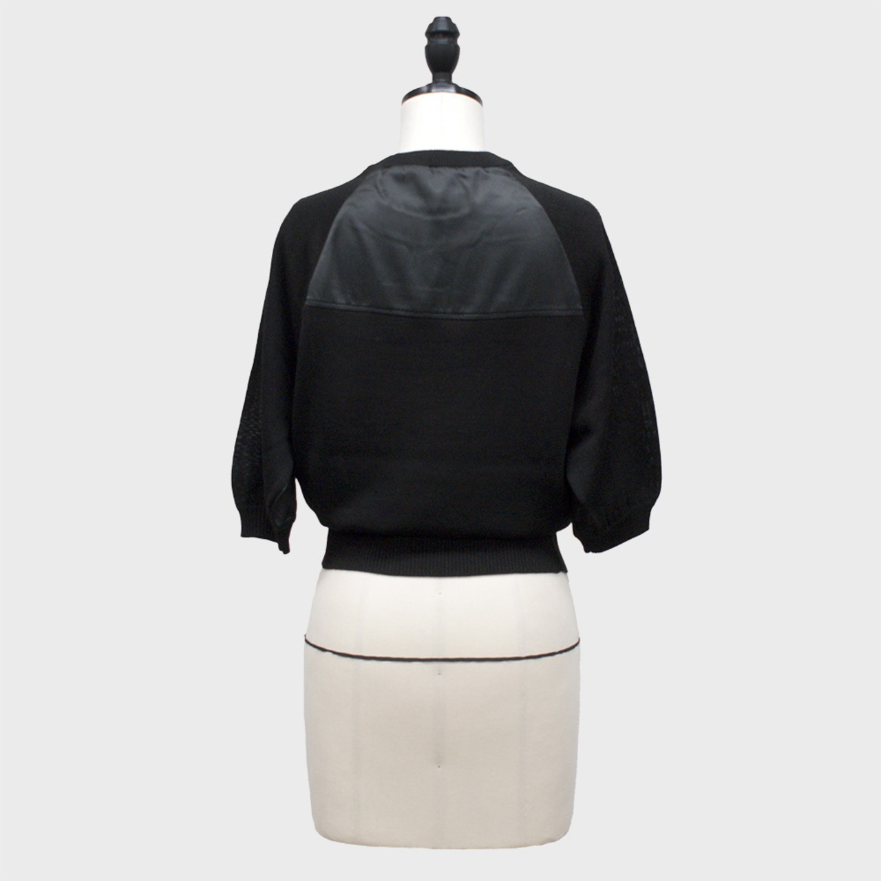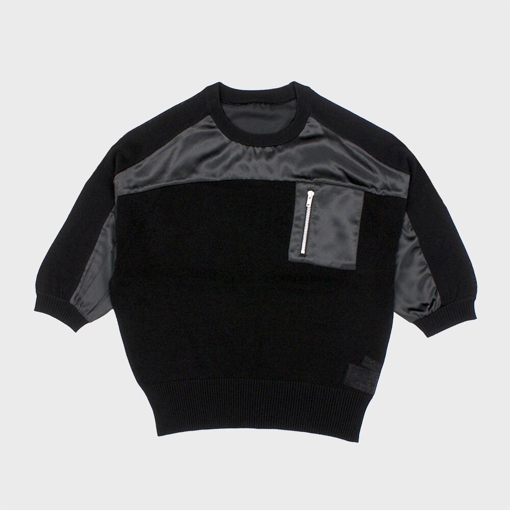 ミリタリーな印象のデザインとシアー素材を組み合わせた、ショート丈の綿レーヨンプルオーバー。