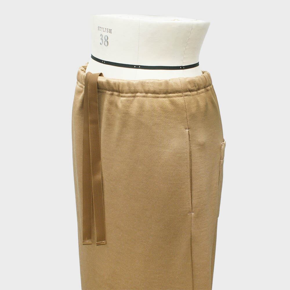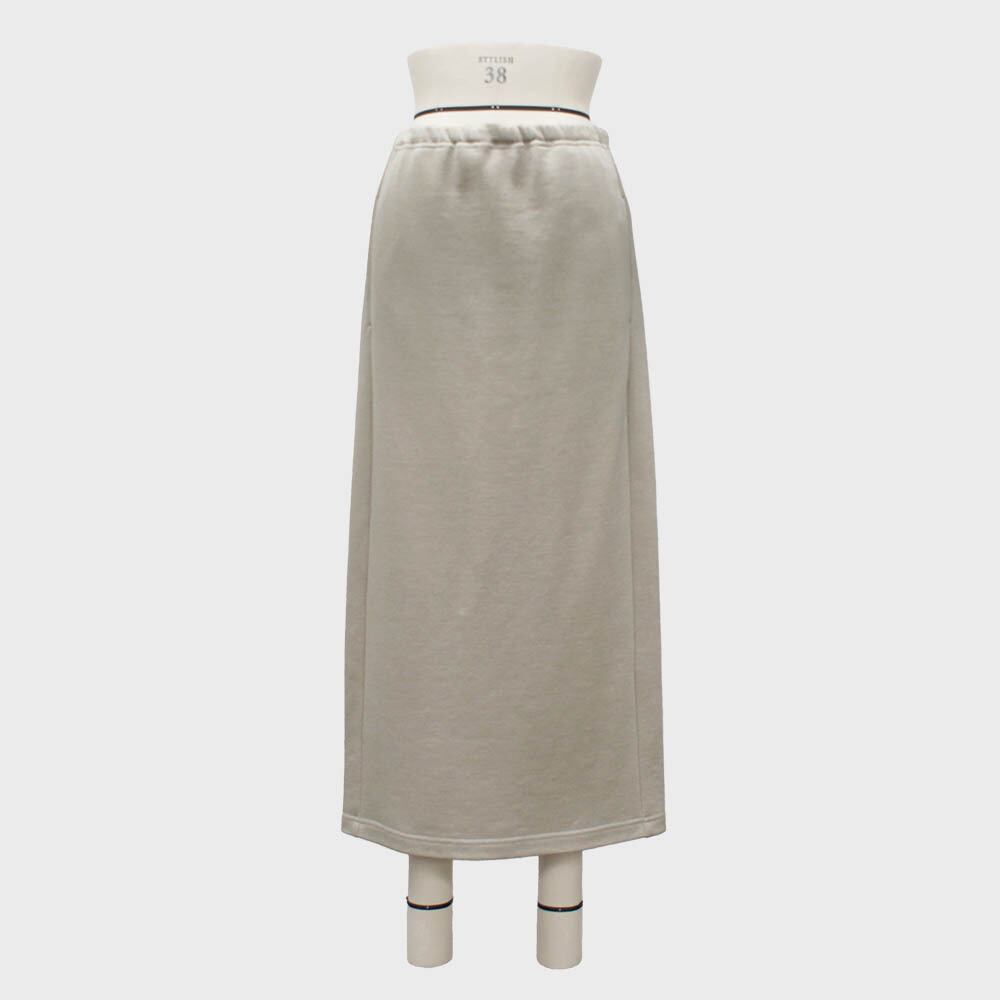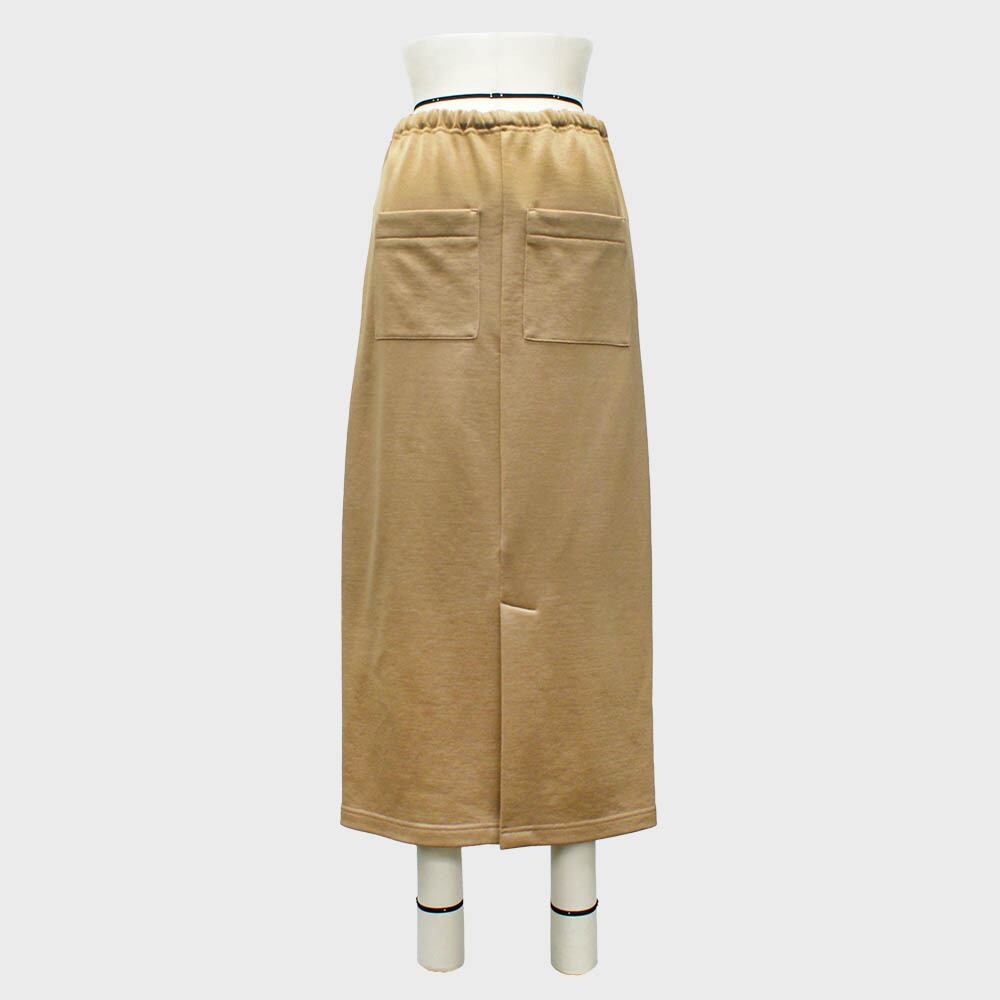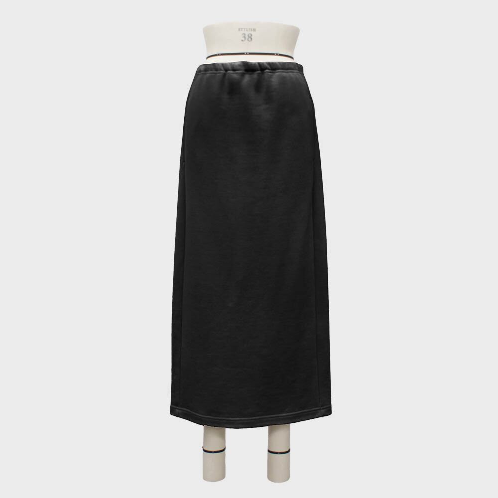 このスウェット素材はスパーブライト糸を使用しているので、上品で光沢感のあるタイトスカートになりました。