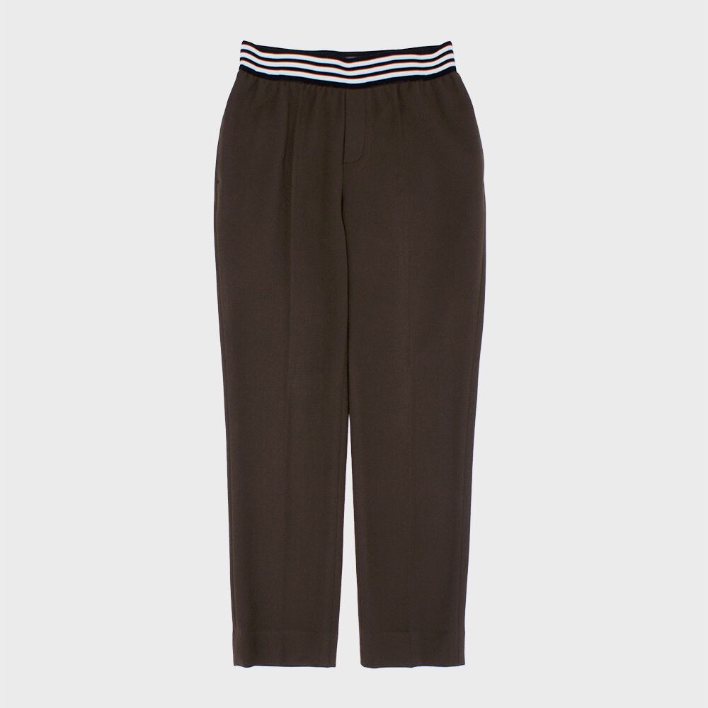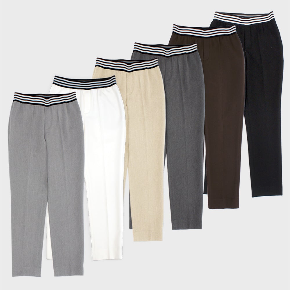 ウエストボーダーゴム裏起毛テーパードパンツ